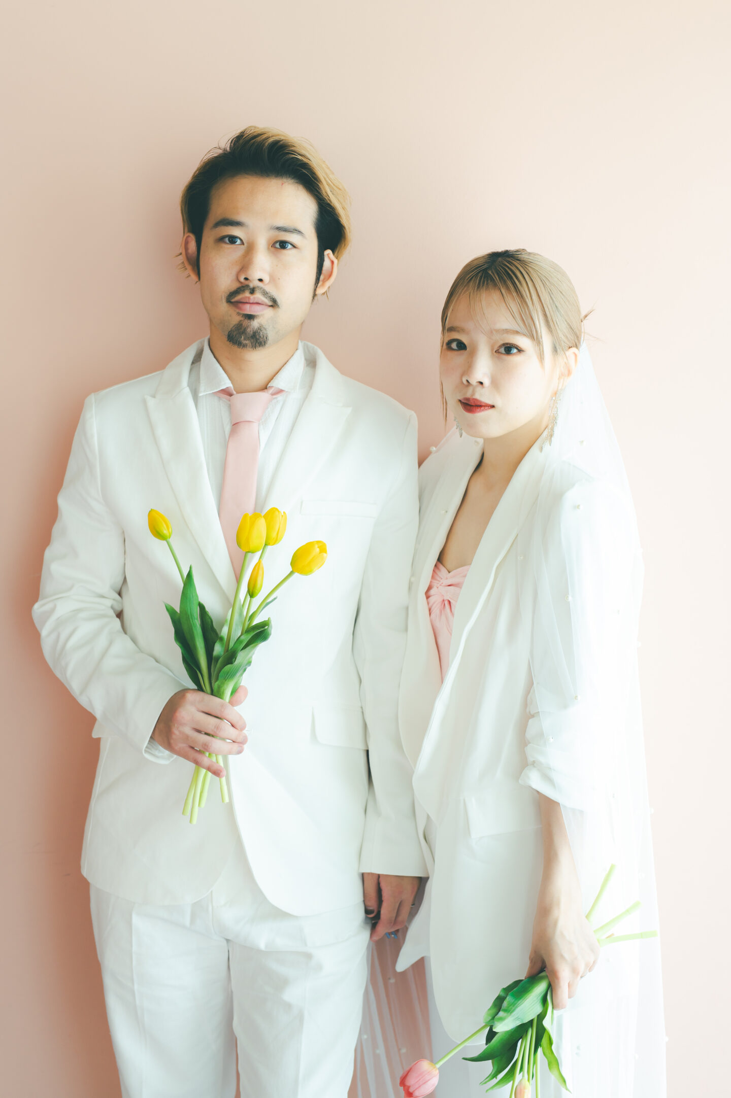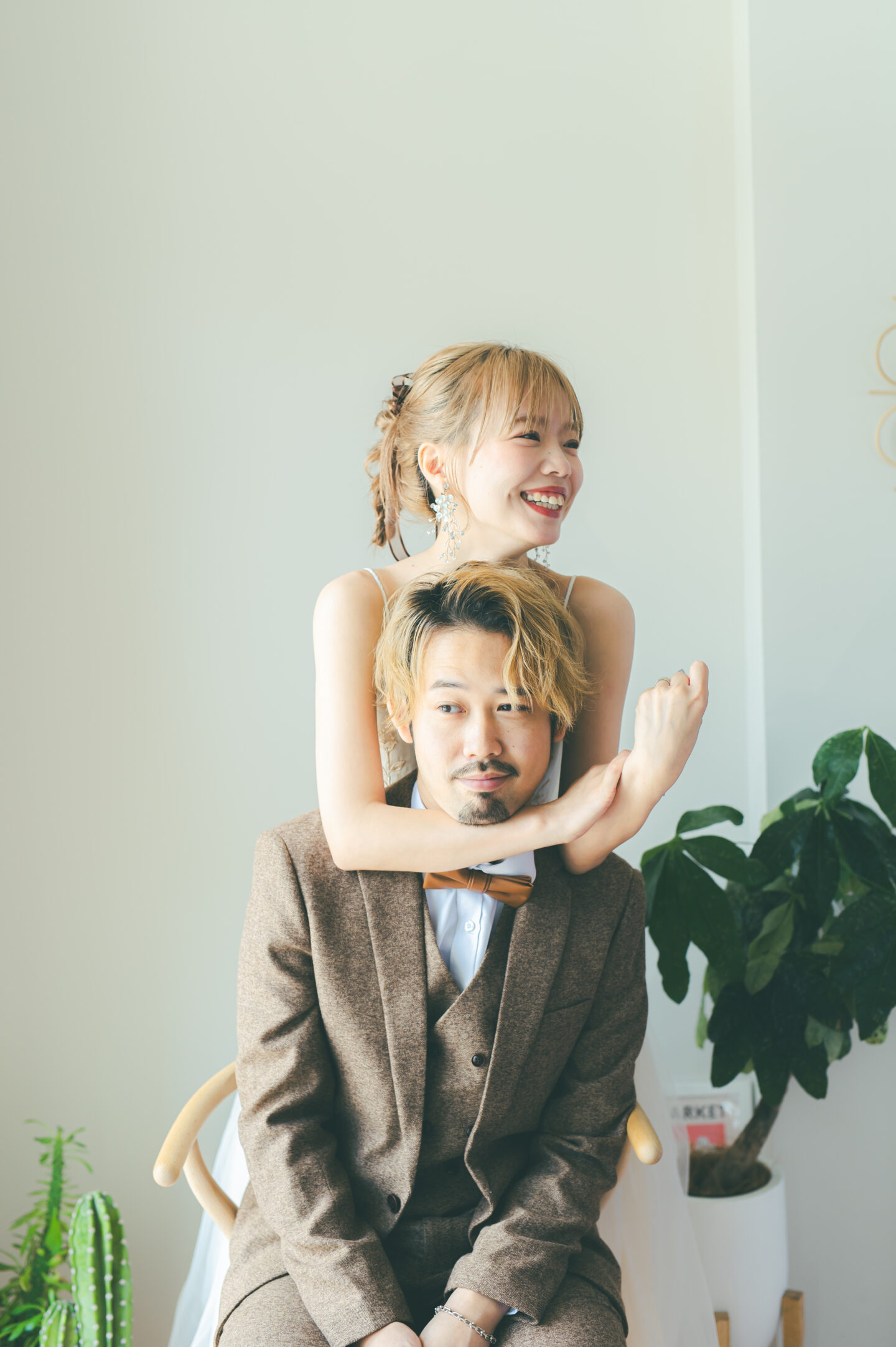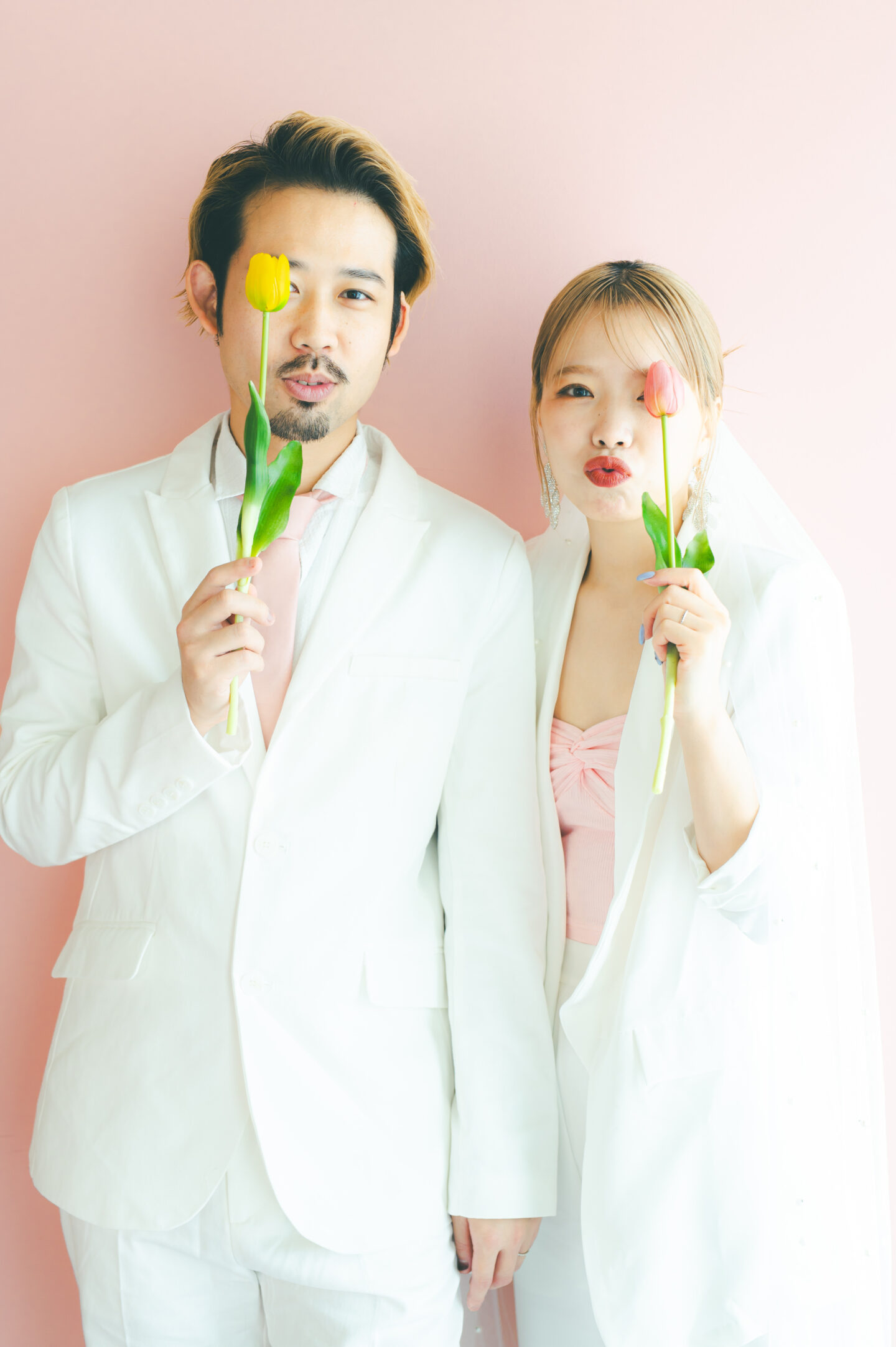 とてもオシャレなおふたりに合わせて、衣装はドレスも着ていただきましたが、パンツドレスをご提案いたしました。